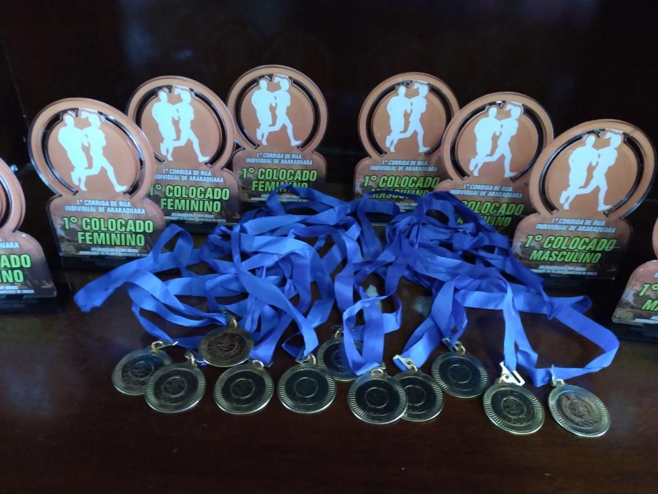 Foto 2 - Troféus e medalhas que será entregues aos ganhadores da Corrida de Rua Hilário Franscisco de Souza;