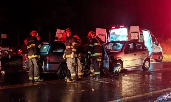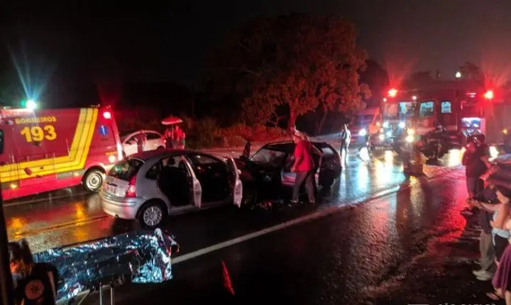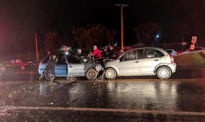 Uma colisão frontal marcou a noite desta quarta-feira, 15, no km 143 da rodovia Dr. Paulo Lauro (SP-215), em São Carlos. Sete pessoas ficaram feridas após um Citroën e uma Parati se envolverem no acidente. Os ferimentos dos ocupantes dos veículos foram considerados leves, mesmo ocorrendo sob chuva, motivo que pode ter influenciado no impacto.