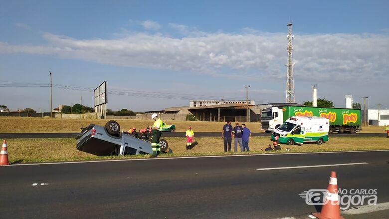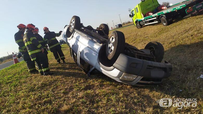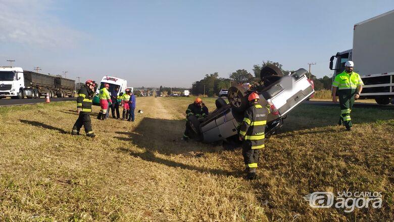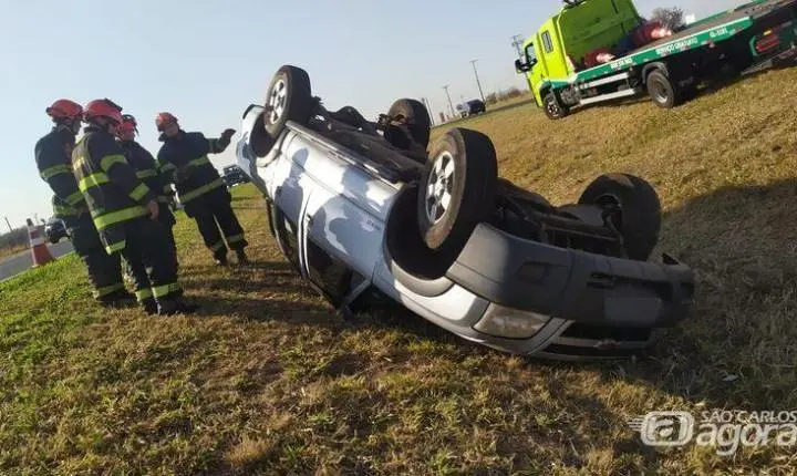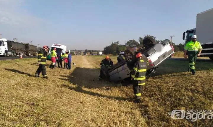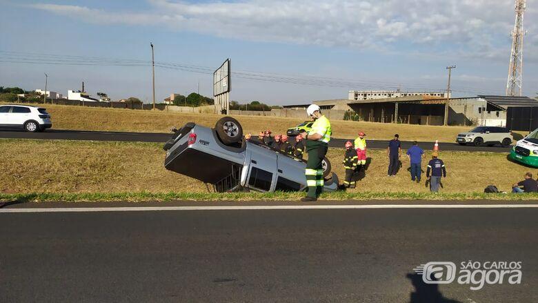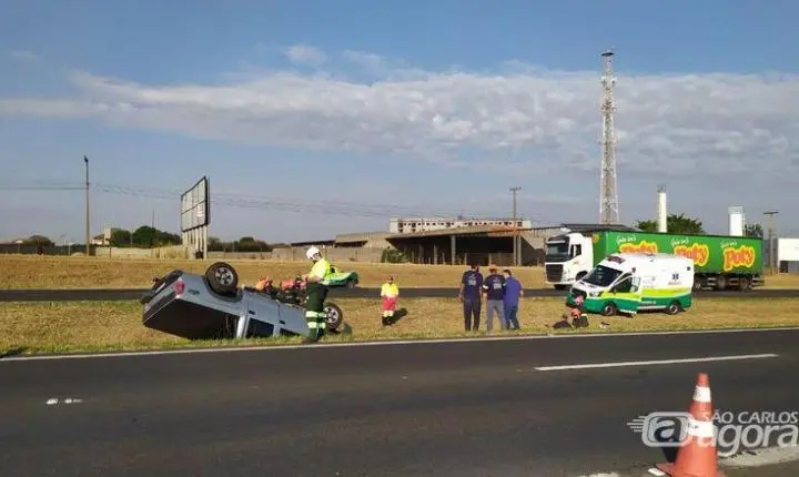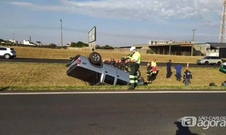 Um S10, com quatro pessoas em seu interior, capotou na manhã desta segunda-feira, 8, no km 240 sentido interior/capital da rodovia Washington Luís (SP-310), na região do Jardim Embaré.
