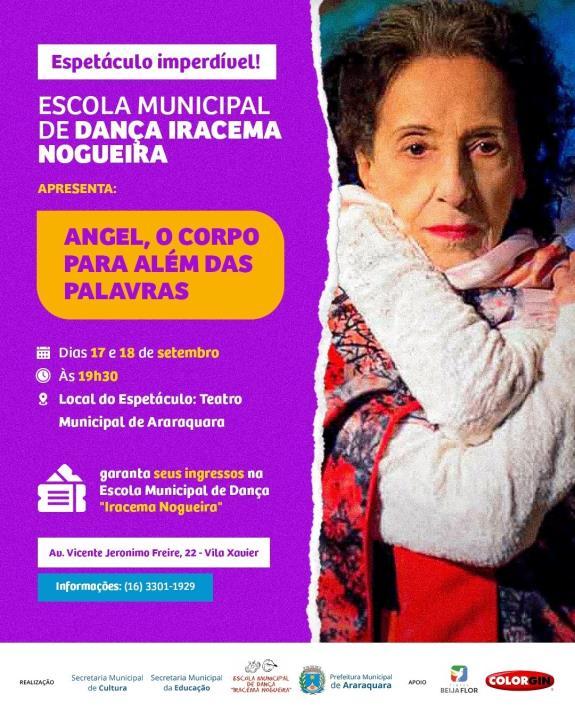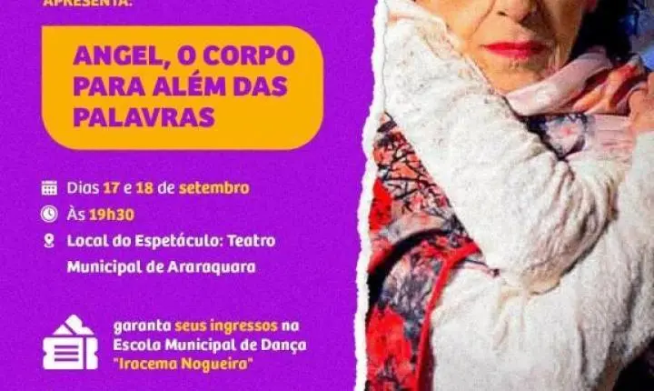 O espetáculo “Angel, o corpo para além das palavras”, com os alunos da EMD – Escola Municipal de Dança Iracema Nogueira, é atração no Teatro Municipal de Araraquara na quarta e na quinta-feira, dias 17 e 18 de setembro, às 19h30.