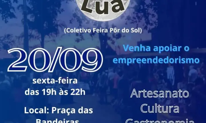 - Sexta-feira (20 de setembro): Feira da Lua, às 19h, na Praça das Bandeiras. O evento é organizado pelo Coletivo Pôr do Sol e oferece gastronomia, arte, música e lazer. Local: Praça das Bandeiras João Colturato “Zinho”.