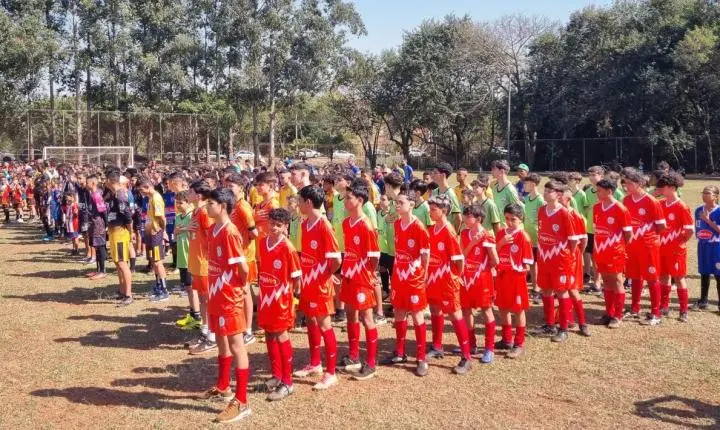A Prefeitura de Araraquara, através da Secretaria Municipal de Esportes e Lazer, realizou, no sábado (17), a abertura do Campeonato Municipal Categorias Menores 2024. O evento aconteceu no Campo do Nova Época e contou com a participação de representantes das equipes, que se reuniram para dar início à competição. A cerimônia de abertura incluiu um desfile da arbitragem e dos atletas das categorias Sub-11, Sub-13, Sub-15 e Sub-17 Masculino.