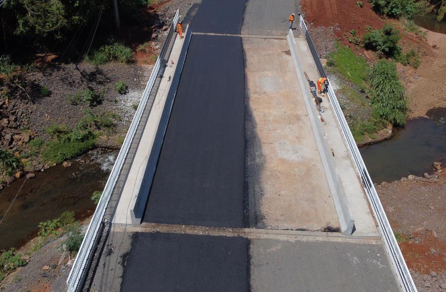 Além da pavimentação, estão em andamento serviços de pintura nos gradis dos guarda-corpos da ponte, no passeio público e na passagem de ciclistas, assim como a construção de caixas de passagem de águas pluviais.