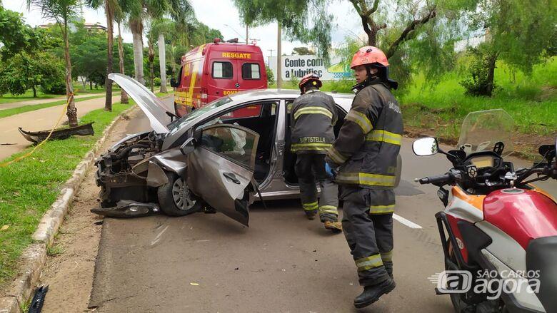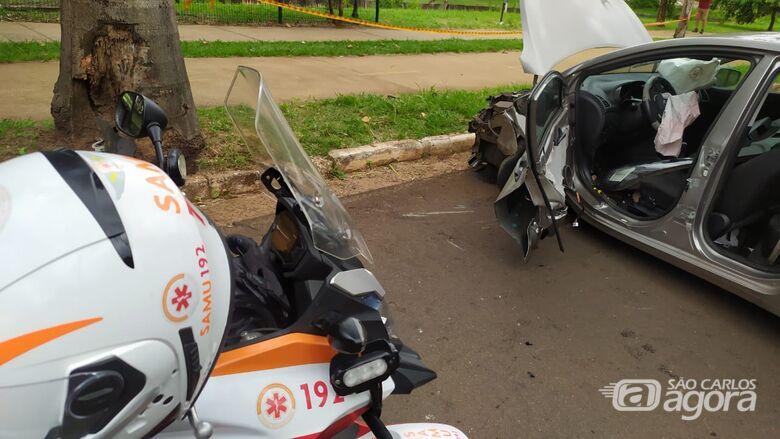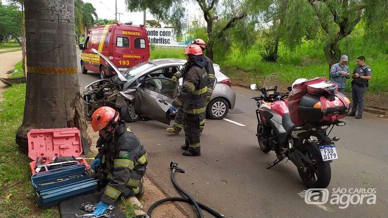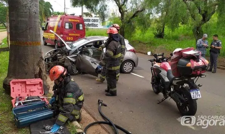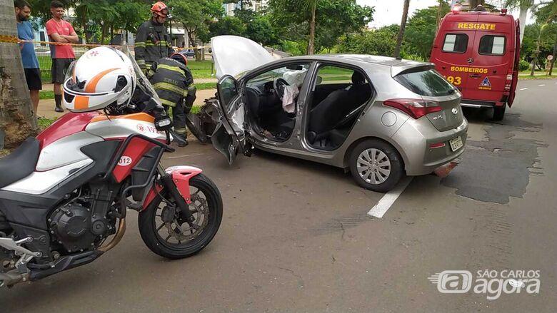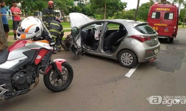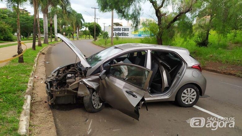 No início da tarde desta quinta-feira, um acidente na Avenida Comendador Alfredo Maffei, na região do Sesc São Carlos, deixou uma mulher de 27 anos ferida. Ela dirigia seu HB20 quando, por motivos desconhecidos, perdeu o controle do veículo, que colidiu violentamente com um coqueiro.
