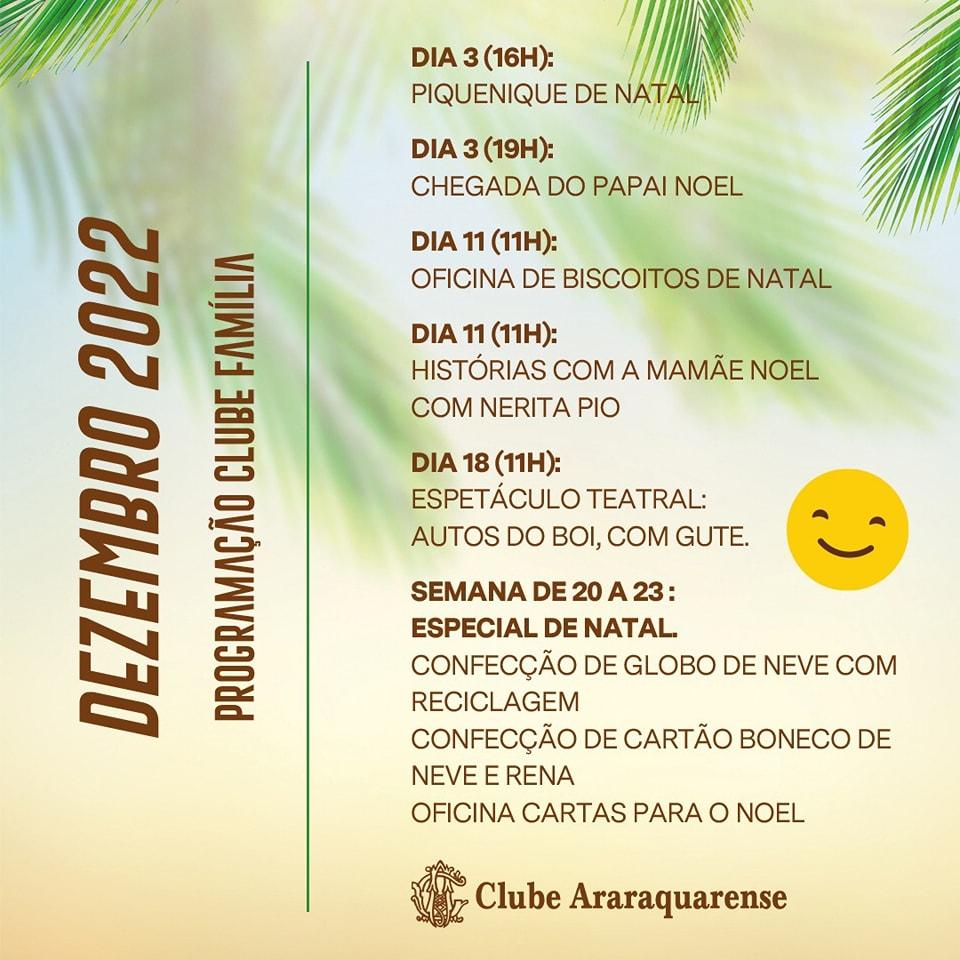 Confiram a programação de Dezembro 2022 do Clube Araraquarense!