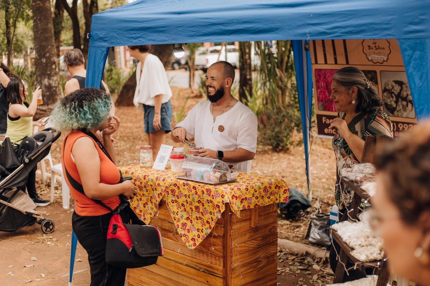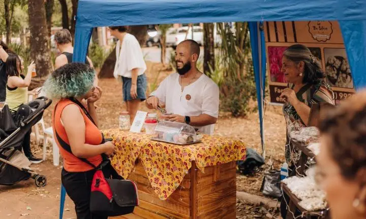 A programação cultural da feira começa às 16h com o projeto "Jardim de Palavras: Cartas para a Terra", uma ação que une literatura e meio ambiente. Coordenada pelo escritor Rodrigo Vulcano, a atividade propõe a criação de mensagens datilografadas em papel semente, que podem ser plantadas para dar origem a margaridas.