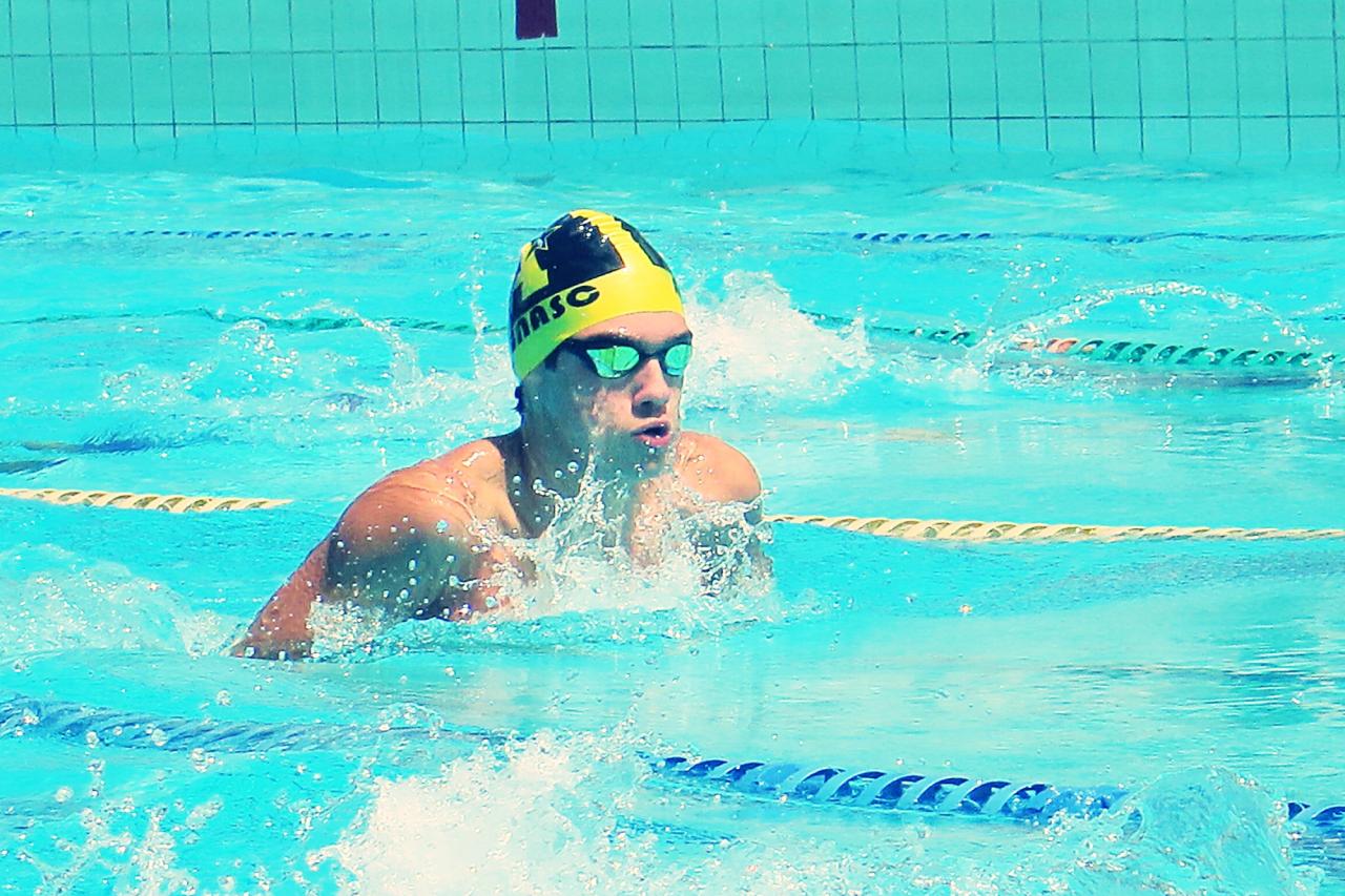 Bernardo Arruda Camargo: medalha de ouro nas provas de 100m borboleta, 100m livre e 200m medley e foi medalha de prata nos 100m peito.