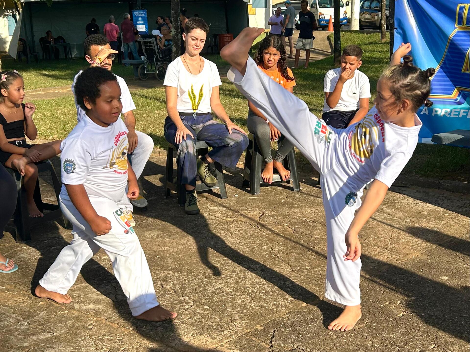 Não apenas serviços, mas também entretenimento para todas as idades fez parte da programação. As crianças desfrutaram de trenzinho, brinquedos infláveis e receberam pipoca e algodão doce. Para os adultos, houve uma empolgante apresentação de banda marcial e um vibrante aulão de Zumba e Hitbox, que animou a todos. O Banco do Povo ainda ofereceu valiosas orientações para aqueles interessados em iniciar seu próprio negócio no município, estimulando o empreendedorismo local.