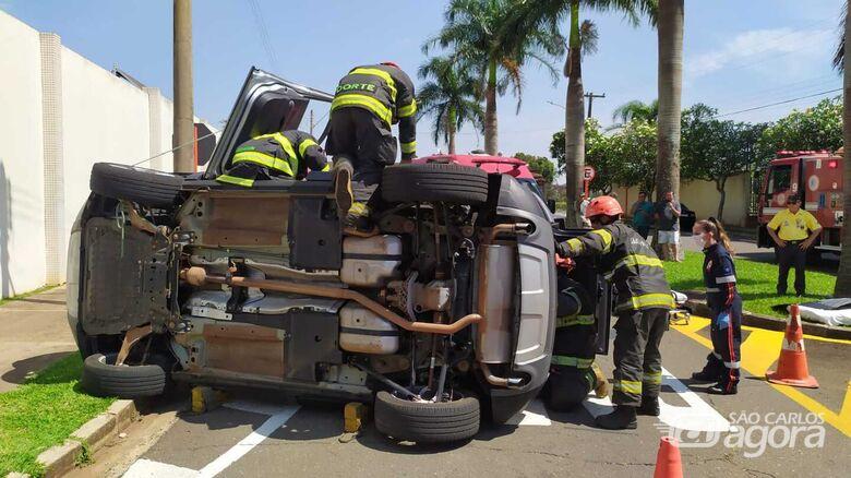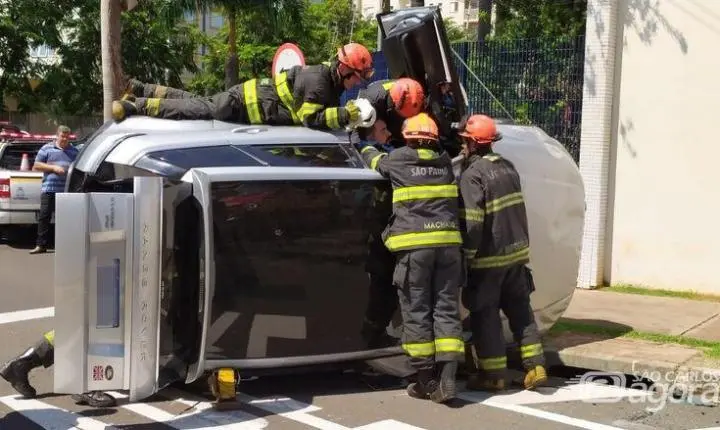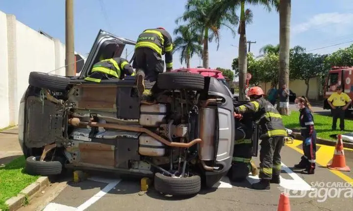 Na manhã desta quarta-feira, um motorista de 29 anos ficou ferido após um acidente de trânsito na região do Parque Faber I, em São Carlos. O veículo envolvido no acidente foi um Land Rover Evoque. De acordo com informações, o motorista tentou estacionar o Land Rover e, ao engatar a marcha ré, colidiu primeiro com um Ônix e, em seguida, com um Gol. O impacto também resultou na colisão com uma placa de sinalização, fazendo com que o Land Rover tombasse.