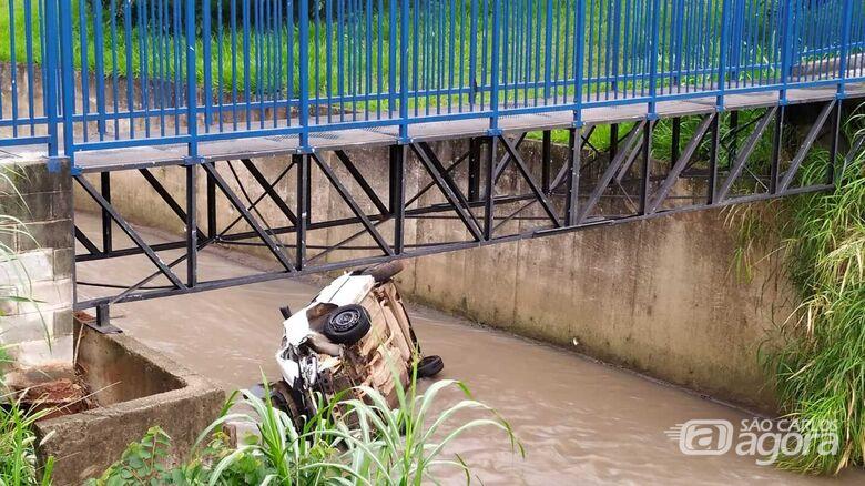 Um carro caiu no córrego do Monjolinho no começo da manhã deste domingo (8) em São Carlos, mas a motorista que conduzia o veículo não sofreu ferimentos.