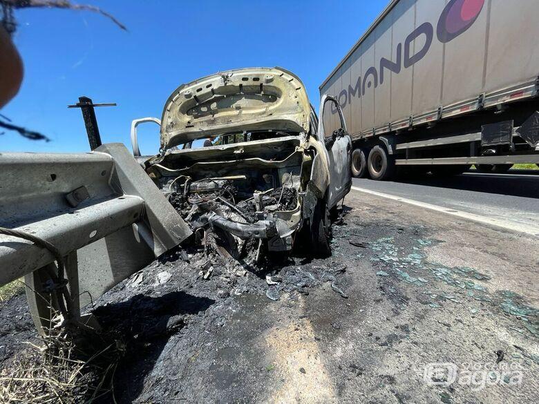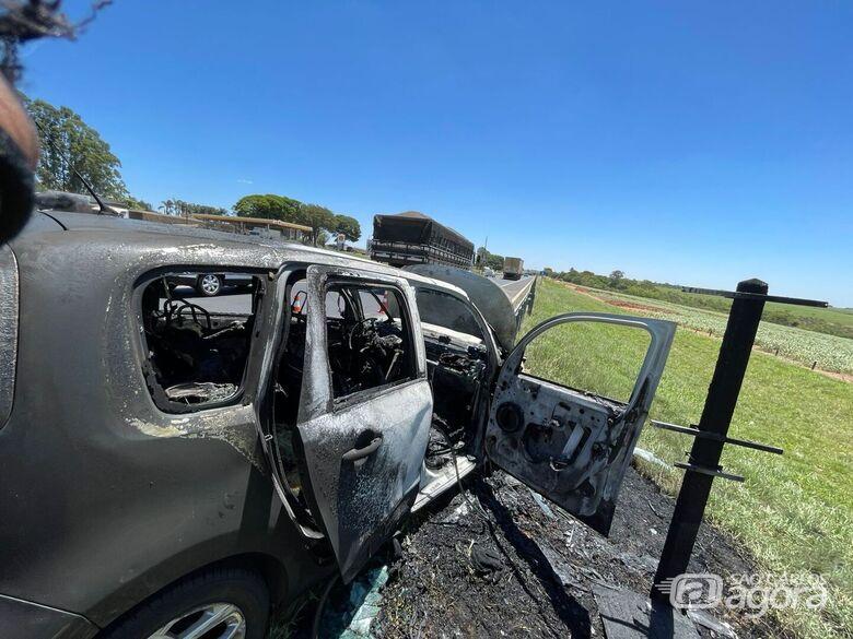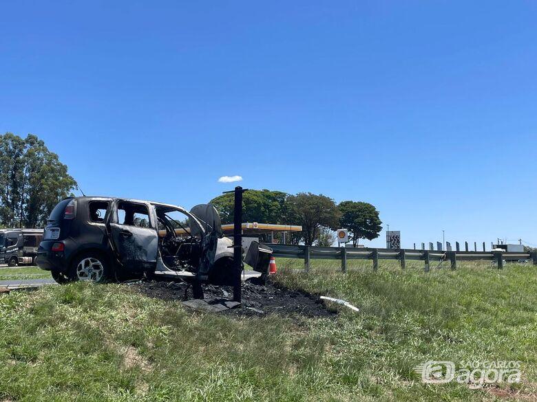 Um CARRO EM CHAMAS mobilizou equipes de socorro na manhã desta quarta-feira (22) na Rodovia Washington Luís (SP-310), no trecho entre São Carlos e Ibaté.