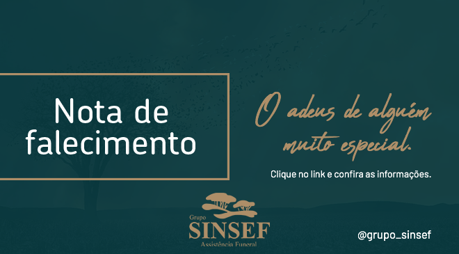 O Grupo Sinsef se despede do Sr. Jesuino Tomaz Barbosa Floriano, aos 66 anos de idade. Deixa filhos e familiares que acompanharam ele nesta jornada aqui na Terra.