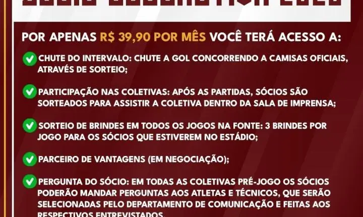Por apenas R$39,90 por mês, você terá direito a todos os benefícios listados na imagem, além de poder participar de ações-surpresa que serão divulgadas ao longo do ano!