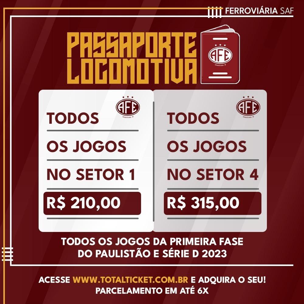 O Passaporte 2023 te dá acesso a todos os jogos da Ferroviária na fase de grupos na temporada 2023, totalizando 13 partidas.