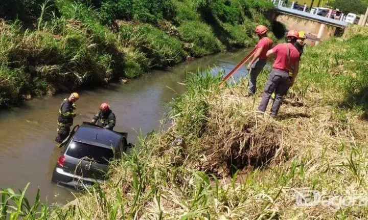 Um VW/Fox foi localizado no córrego próximo à rotatória do Cristo, em Região. Provavelmente, o acidente ocorreu na madrugada. Populares que passavam pela avenida Francisco Pereira Lopes visualizaram o veículo e acionaram os Bombeiros.